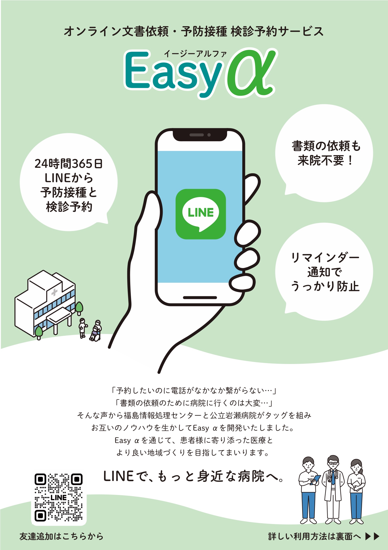 Easy-α(イージーアルファ)は、患者さまと医療機関の間にある手続きの摩擦を減らし、 必要な案内をスムーズにつなぐことで、安心して使える運用を支援します。